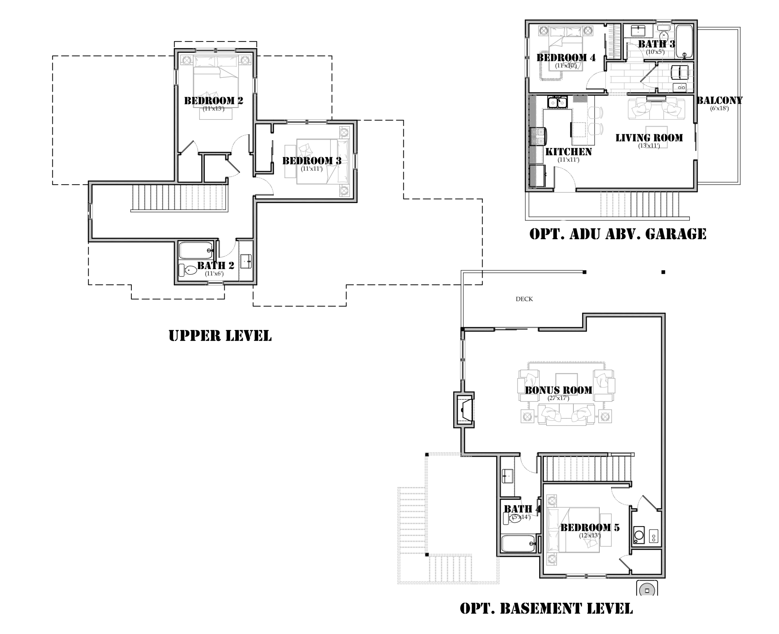 Introducing Talline Lot 31 – a versatile and design-forward residence offering flexible living spaces in a modern, two-level layout. The main home features 3 bedrooms and 2.5 bathrooms, complemented by a den and an upstairs bonus room that can adapt to your lifestyle—ideal for work, play, or relaxation. A breezeway connects the main living space to a two-car garage, offering both function and charm. Two porches and optional additions, including a livable basement and an ADU, expand the possibilities for multigenerational living or additional work-from-home space. With a thoughtful floor plan and a strong connection to outdoor living, Lot 31 is ready to grow with you with 3,636 SF total – including 2,214 SF main living space with an additional 594 SF ADU and 894 SF basement.