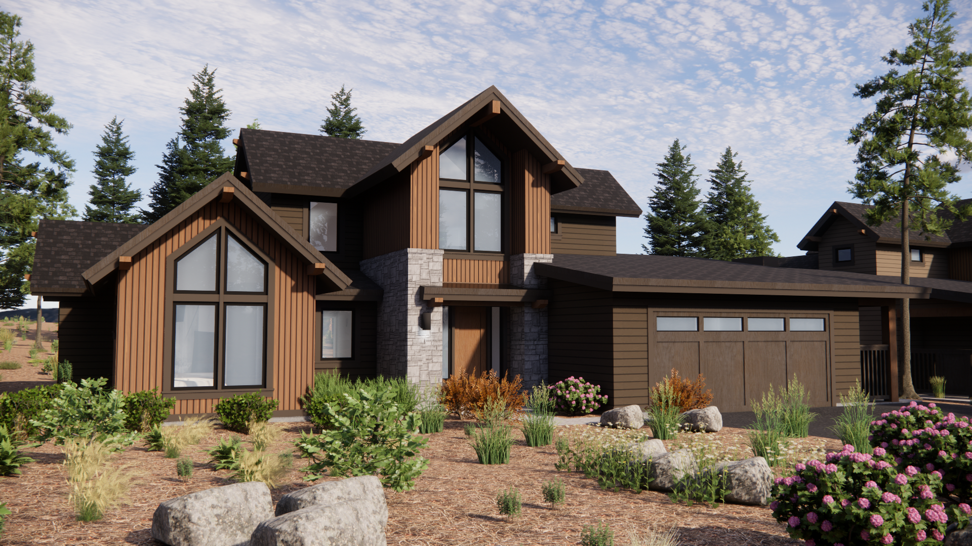 Stunning mountain-modern retreat in Caldera Springs Lakeside blending natural materials with elevated design. The vaulted great room features a Heat-N-Glo fireplace and flows seamlessly to covered outdoor living with built-in BBQ, firepit, and hot tub. The chef’s kitchen includes JennAir appliances, knotty alder cabinetry, and full-height slab backsplash. Main level offers multiple bedrooms plus a private owner’s suite, while upstairs adds an additional bedroom and bonus space. A separately rentable unit with kitchenette and private entry provides flexibility. Earth Advantage certified with a two-car garage and owner storage.
