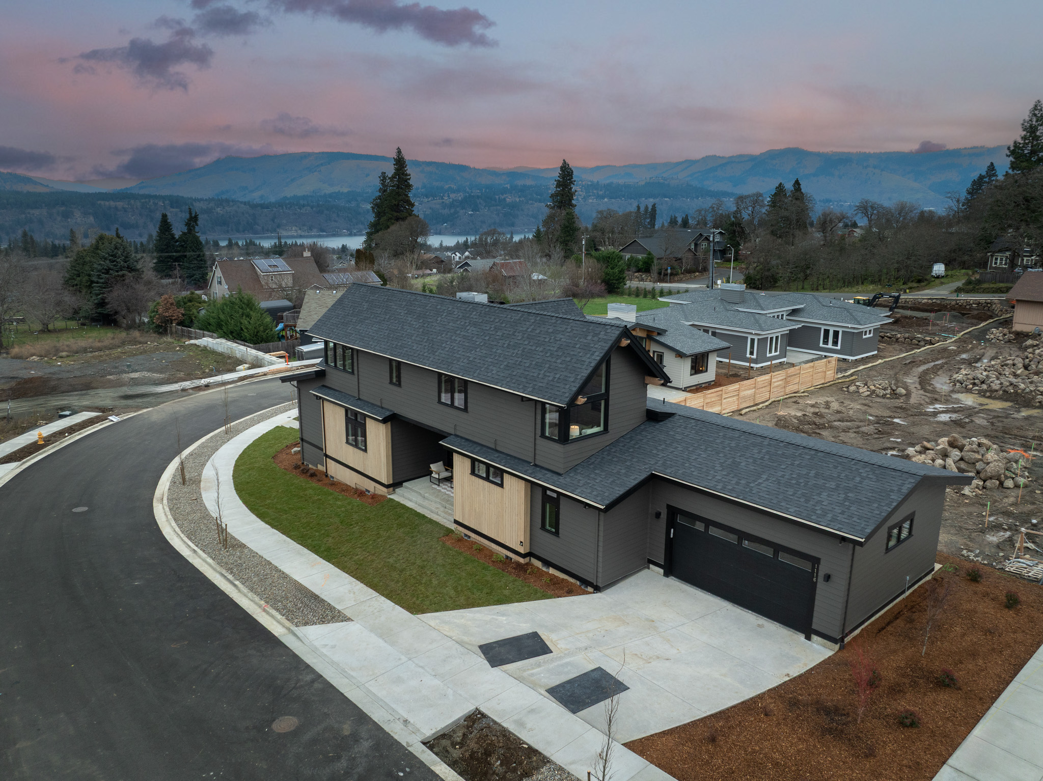 Welcome to Rock Creek Lot 6 located in the newest neighborhood in Hood River, where thoughtful design meets everyday comfort. This 4-bedroom, 3.5-bathroom home offers versatile living with two primary-style suites on the main level, each featuring walk-in closets and connected bathrooms. Upstairs, you’ll find two additional bedrooms and a spacious loft—perfect for a home office, playroom, or second living space. The heart of the home surrounds a private courtyard, ideal for indoor-outdoor living and entertaining. An open-concept living room, dining area, and kitchen make hosting and daily life seamless, while a mudroom and 2-car garage add convenience. Enjoy a welcoming front porch entrance and an ideal location just minutes from all that Hood River has to offer—outdoor adventure, local shops, and great dining—with the added bonus of beautiful surrounding views.